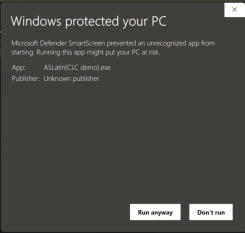 These instructions show how to install one of the demonstration programs on a Windows 11 computer. Other versions of Windows will give similar messages.