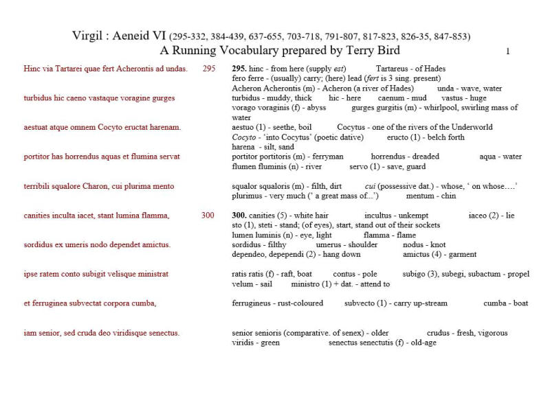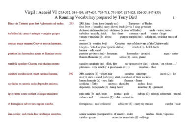 A running vocabulary should be instantly available as you read a text, with no irritating search in the back of the book or on the next page or in a mini alphabetical list. Clicking on words on on-line texts is fun but very slow for learners.Although I have produced running vocabularies for 40 years or so, they have taken a sharp step forward with the advent of new technology, successful utilities for typing Greek on the computer and the possibility of downloading whole Greek and Latin texts and immediately incorporating them into one’s own work.I think I now have the ideal solution, the page turned landscape, the text on the left, nicely spaced, and the vocabulary absolutely tailored to the lines, instantly available to the flick of an eye. This is not an edition but a tremendous aid for a first reading. Most of these RVs have text as well and all later ones will be like this. Some older RVs are vocabulary only, in newspaper columns.Current users are delighted by the responses of their students.Examples are here.
